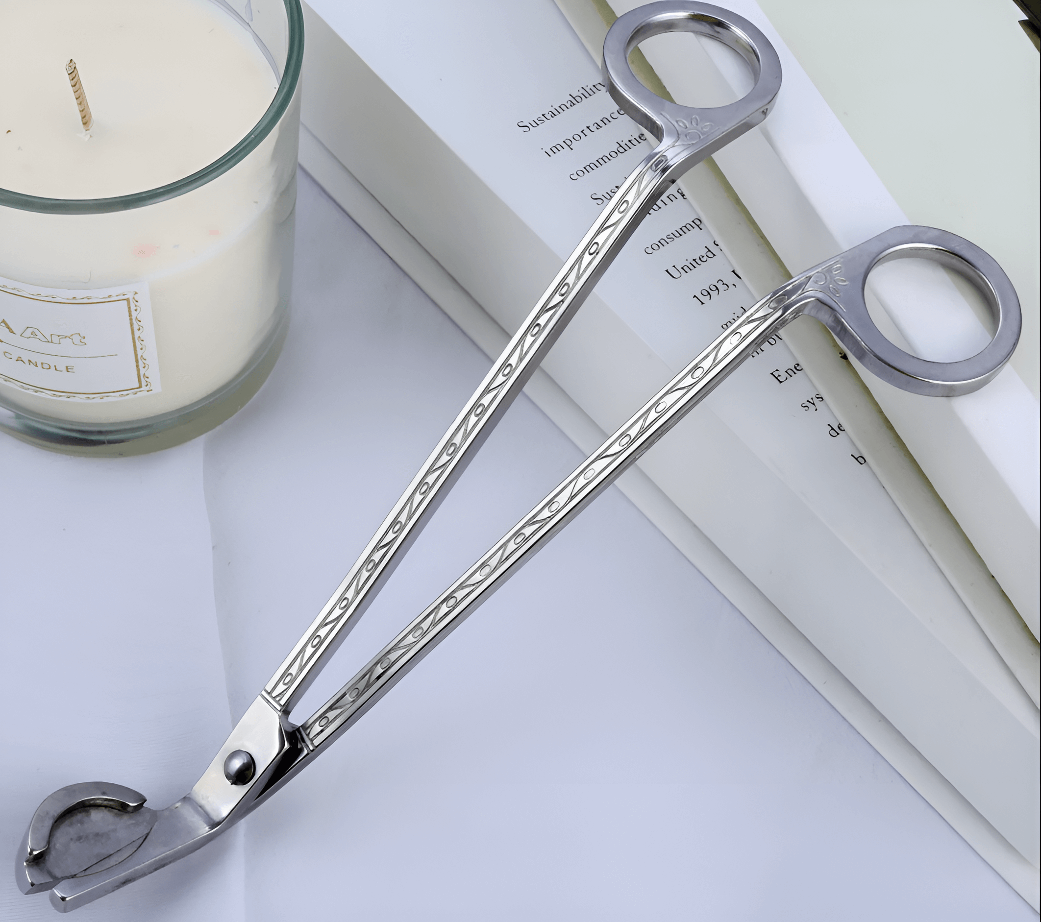 Знаете ли вы секрет идеальной свечи? Он скрыт в своевременной заботе о фитиле. Эти ножницы — ваш личный мастер-инструмент для создания безупречной атмосферы. Всего один точный взмах — и вы дарите своей свече ровное, чистое и долгое горение без копоти. А изящная лопаточка позаботится о безупречном виде воска. Превратите уход в удовольствие, а каждый вечер — в маленький праздник безупречного уюта.