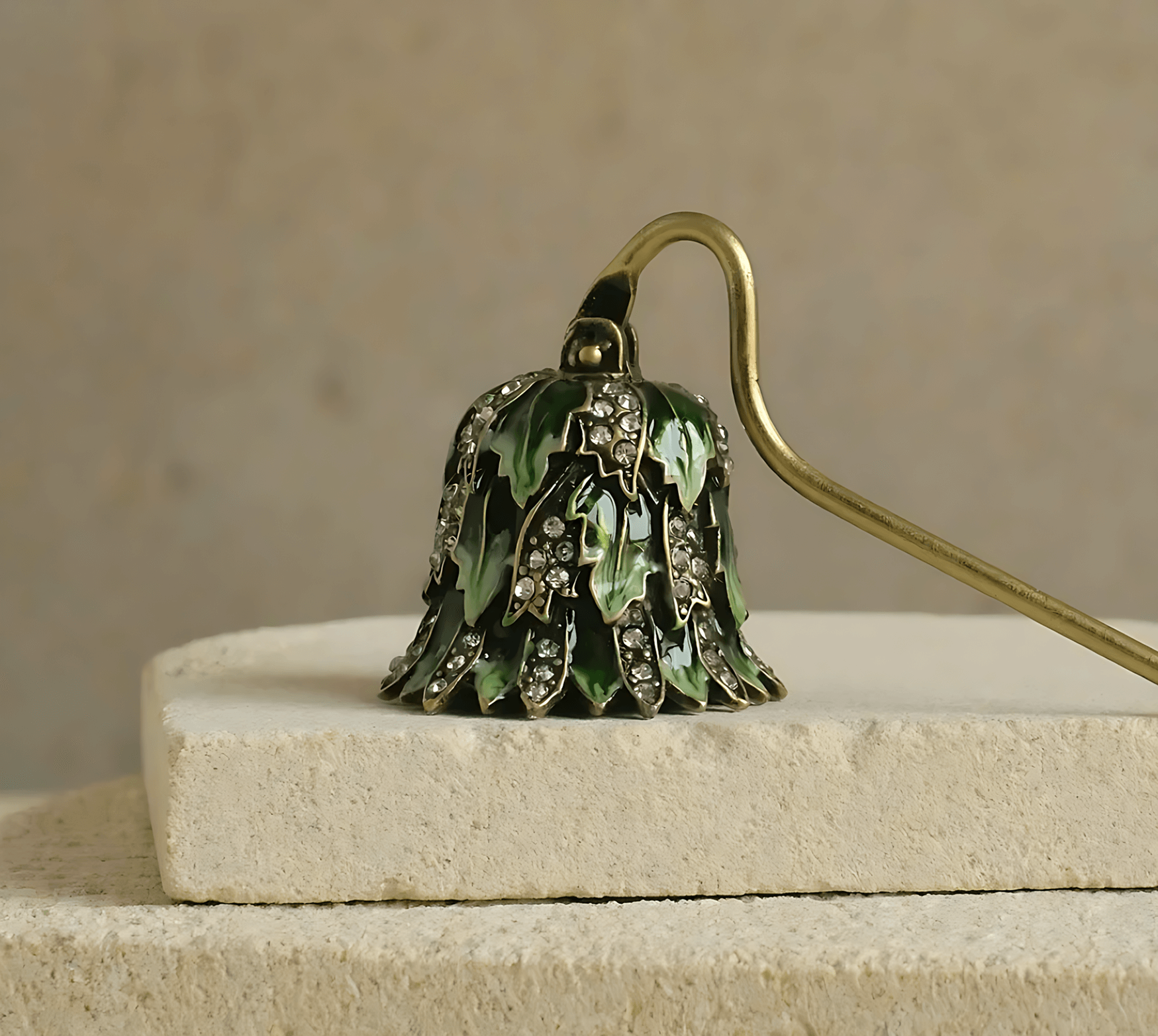 Глубокий зелёный, как драгоценный малахит или тихий омут в лесном озере. Этот гаситель в форме лотоса на золочёной ручке привносит в ваш ритуал ноту природной гармонии и свежести. Он мягко и бесшумно завершает горение свечи, оберегая аромат от дыма, а после становится изысканным акцентом в интерьере. Изумрудный оттенок, символизирующий жизнь и обновление, делает его не просто инструментом, а маленьким произведением искусства, напоминающим о вашей связи с природой, даже когда вечер заканчивается в четырёх стенах.